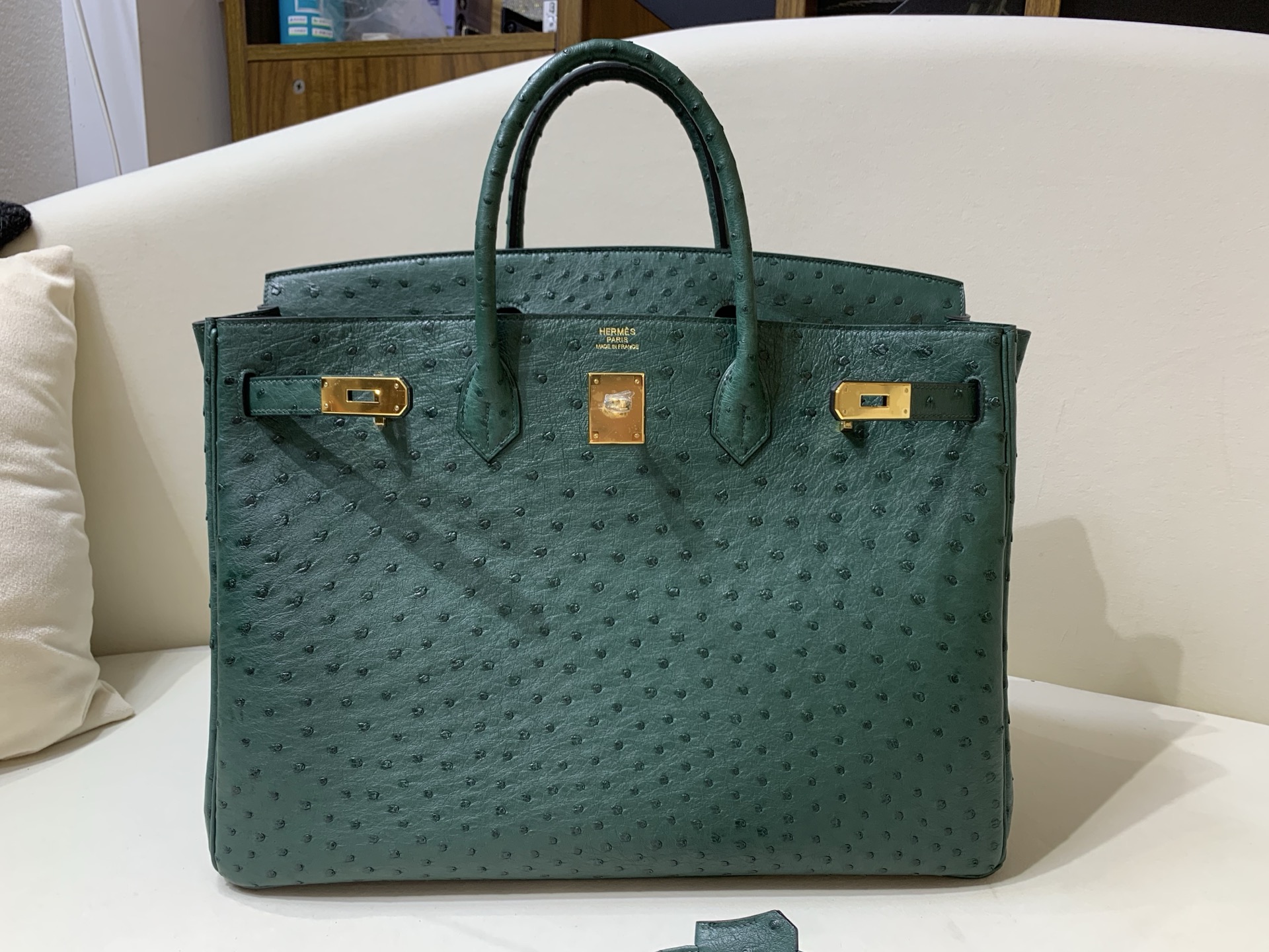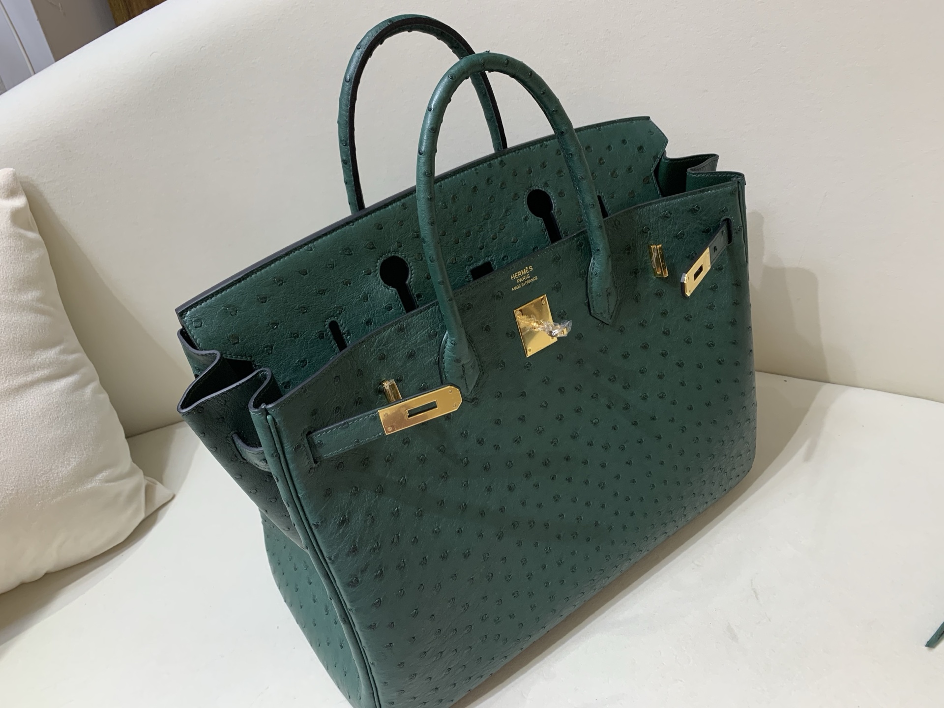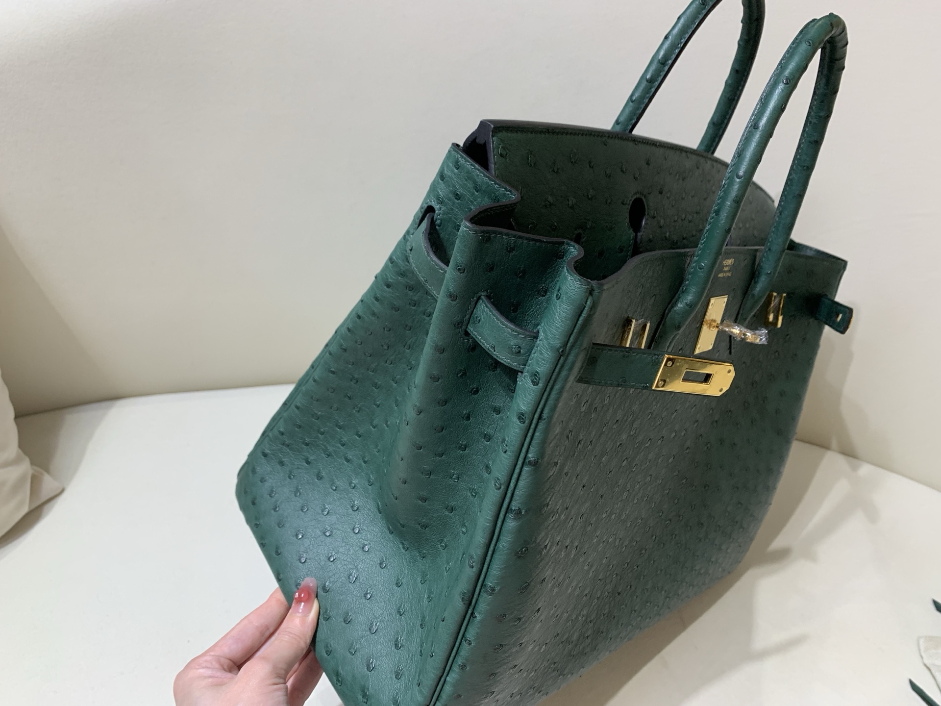 Birkin 40cm Golden Buckle KK Ostrich Z6 Peacock 🦚 Green top grade handmade customization